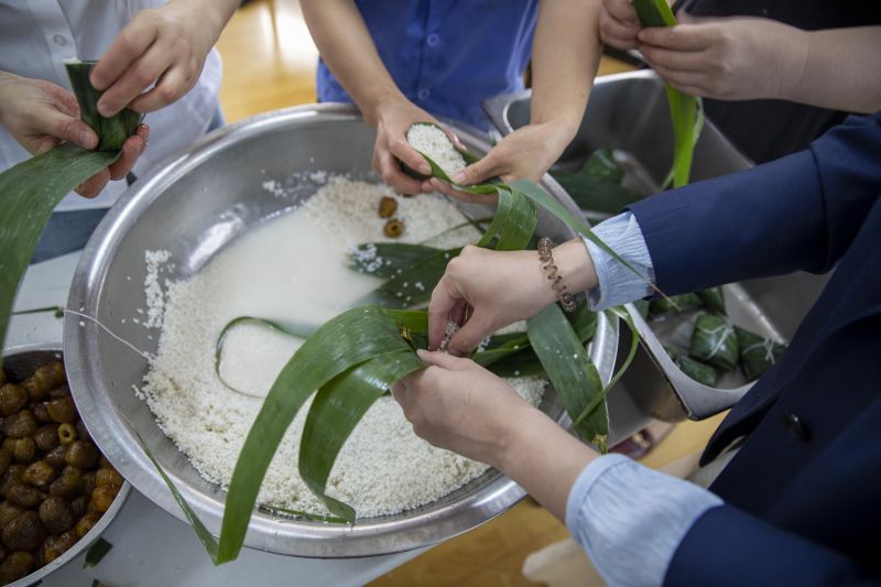 當天一早,集團公司工會(huì )做好了準備工作,工作臺上擺放著(zhù)糯米、粽葉和各種餡料,參加活動(dòng)的職工絡(luò )繹不絕,大家有的動(dòng)作嫻熟,揉制糯米、包裹粽葉、添入糯米餡料、壓緊實(shí)、封口、扎捆,三兩下一個(gè)精美的粽子就呈現在眼前。有的略顯生疏,跟著(zhù)有經(jīng)驗的同事分步驟學(xué)習,仔細研究,細致雕琢,每當成功包出一個(gè),臉上就洋溢起幸福的笑容?;顒?dòng)中,大家互相交流著(zhù)心得和經(jīng)驗,分享著(zhù)彼此的喜悅和成就,其樂(lè )融融。