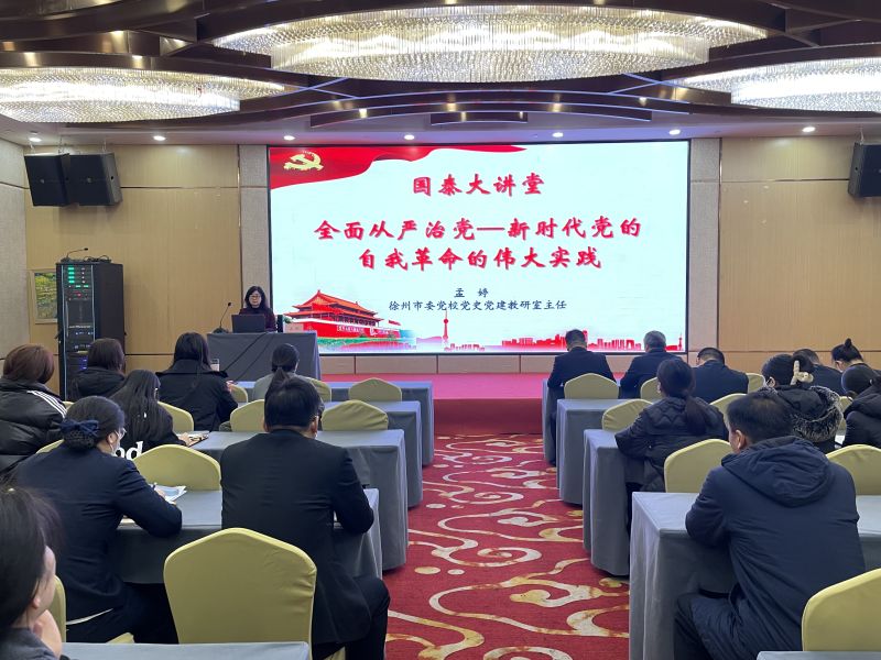 為進(jìn)一步推動(dòng)學(xué)習貫徹習近平新時(shí)代中國特色社會(huì )主義思想走深走實(shí),引導廣大黨員干部始終保持對黨的忠誠,不斷增強全面從嚴治黨的政治自覺(jué),12月13日,國泰投資公司邀請徐州市委黨校黨史黨建教研室主任孟婷,以“全面從嚴治黨—新時(shí)代黨的自我革命的偉大實(shí)踐”主題,為國泰投資黨總支全體黨員進(jìn)行專(zhuān)題授課。