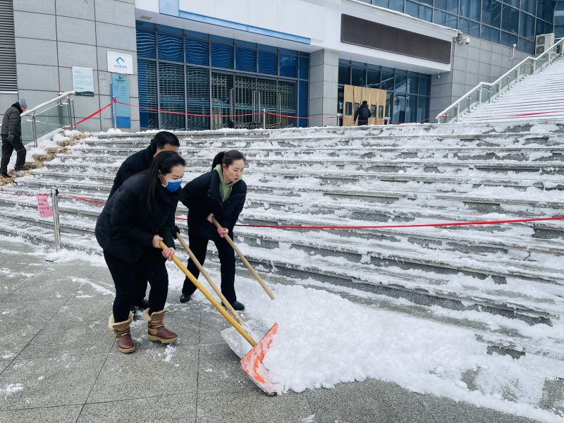 掃雪現場(chǎng),黨員們有商有量、分工合作,有的提前把警戒線(xiàn)拉起來(lái),有的將準備好的稻草、地墊等防滑物品仔仔細細地鋪在供市民通行的道路上,大家人手一把除雪鏟,一鏟、一推把積雪掃到路旁空地上。在地庫出入口,路面結冰情況較為嚴重,黨員們群策群力,一個(gè)個(gè)“破冰之舉”在集體的智慧下誕生。經(jīng)過(guò)一上午的共同努力,公司大樓周邊路面和地庫出入口的積雪已經(jīng)清除干凈。天氣雖寒,大家卻干得熱火朝天、不懼辛苦,用實(shí)際行動(dòng)為辦事群眾清出了一條條“安全通道”。