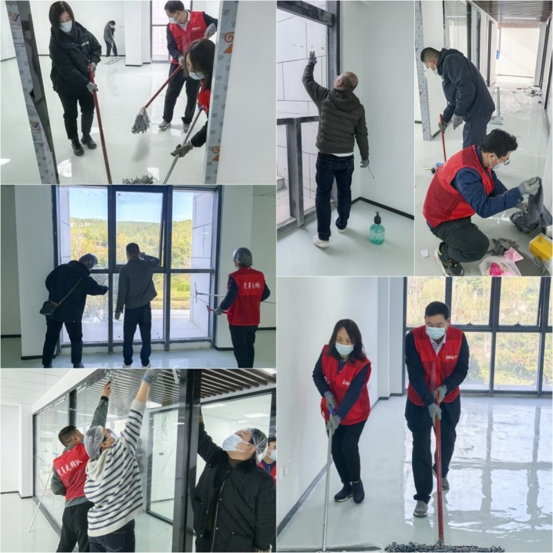 “支部建在項目上、黨旗插在工地上”。國泰地產(chǎn)黨支部始終堅持黨建品牌與工程項目深度融合,項目在哪里黨員先鋒隊就在哪里。到達活動(dòng)現場(chǎng)后,黨員先鋒隊成員和志愿者們主動(dòng)拿起刮刀、塵推、地刷、掃把等10余件清潔工具,按照小組分工協(xié)作,清潔地面、清掃垃圾、擦拭玻璃,井然有序干起來(lái),有的人頭發(fā)里沾滿(mǎn)了灰塵,有的人臉上掛滿(mǎn)了汗珠,有的人汗水濕透了衣衫。大家不嫌臟、不嫌累,熱情高漲,紛紛以為企業(yè)降本增效為榮,樂(lè )在其中。