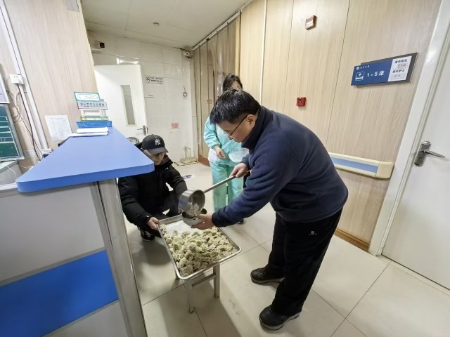 隨后,慰問(wèn)小組走進(jìn)各科室和病房,為一線(xiàn)醫護人員、住院患者及家屬送上一碗熱騰騰的餃子,所到之處洋溢著(zhù)濃厚的新春喜樂(lè )氛圍。