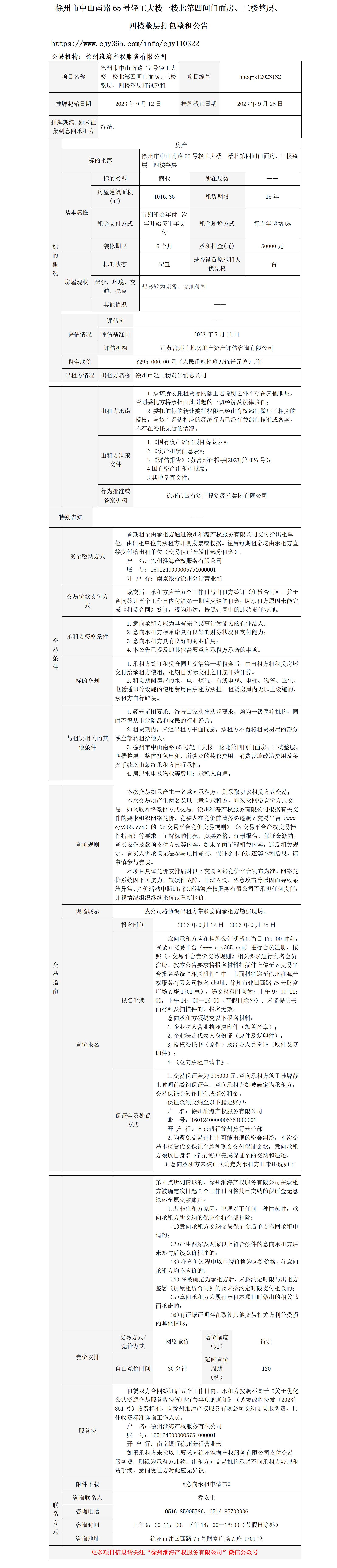 徐州市中山南路65號輕工大樓一樓北第四間門(mén)面房、三樓整層、 四樓整層打包整租公告