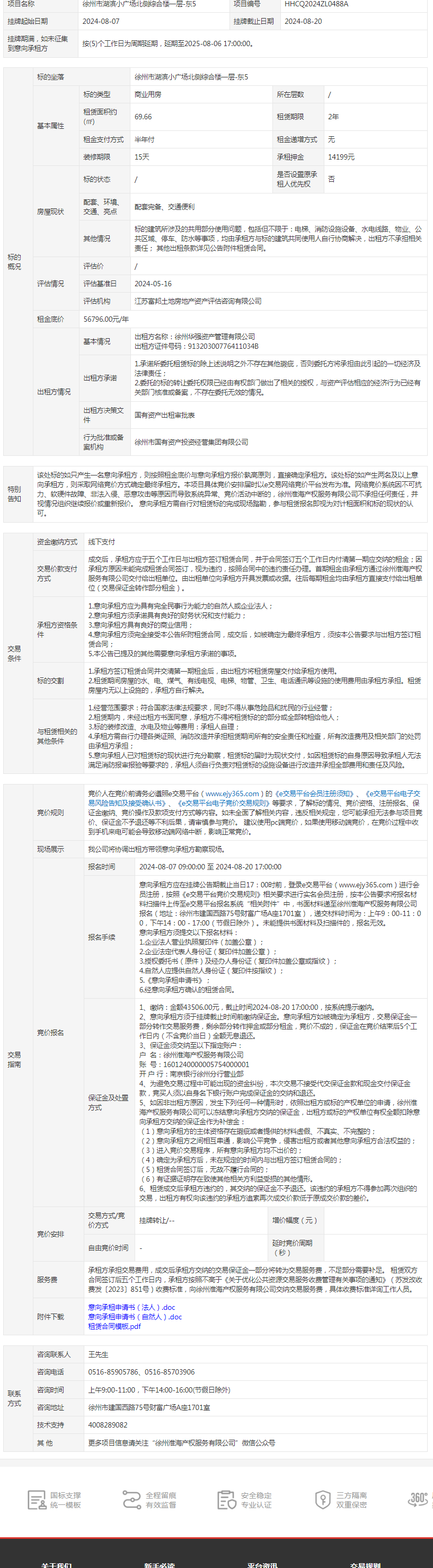 徐州市湖濱小廣場(chǎng)北側綜合樓一層-東5招租公告