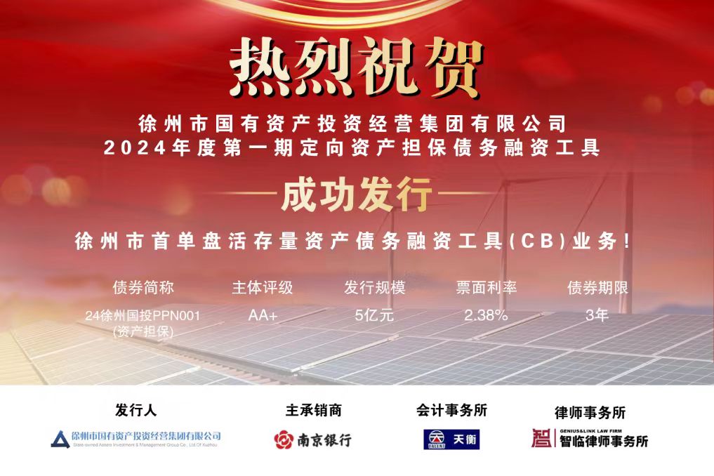 徐州首單!徐州國投集團2024年度第一期CB產(chǎn)品成功發(fā)行