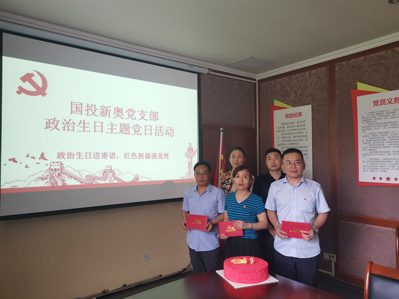 為進(jìn)一步強化黨員的身份意識、責任意識、黨性意識,進(jìn)一步增強黨員“政治儀式”感,7月8日下午,徐州國投新奧黨支部組織召開(kāi)了“政治生日送寄語(yǔ)、紅色祝福強黨性”主題黨日活動(dòng),為國投新奧公司全體5名黨員集體過(guò)政治生日。