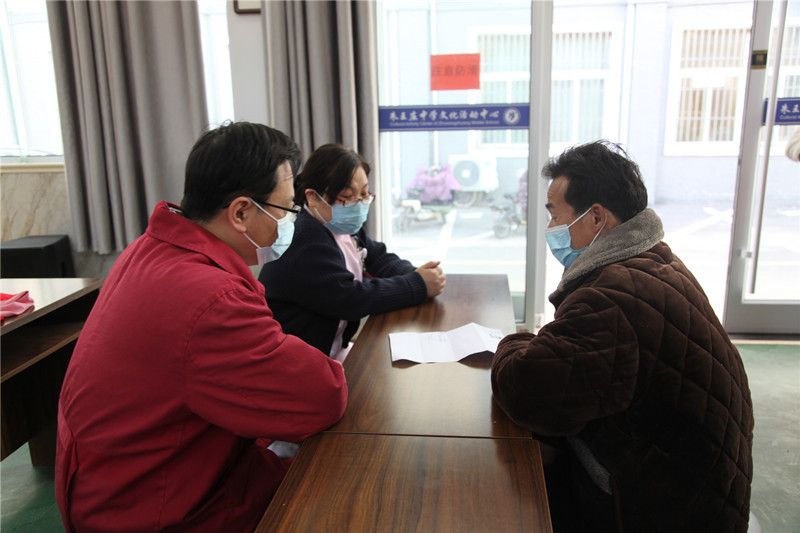 朱王莊中學(xué)校長(cháng)霍久陽(yáng)帶領(lǐng)志愿者們來(lái)到會(huì )議室,四個(gè)低保家庭的學(xué)生及家長(cháng)已經(jīng)在這里等候,志愿者們將帶來(lái)的物品交到每個(gè)家庭手中,并與孩子及家長(cháng)進(jìn)行了深入交流談心,為他們解答生活、學(xué)習過(guò)程中的困惑,同時(shí),醫務(wù)人員為他們進(jìn)行了健康體檢和健康教育,對生活方式、飲食選擇等進(jìn)行指導。