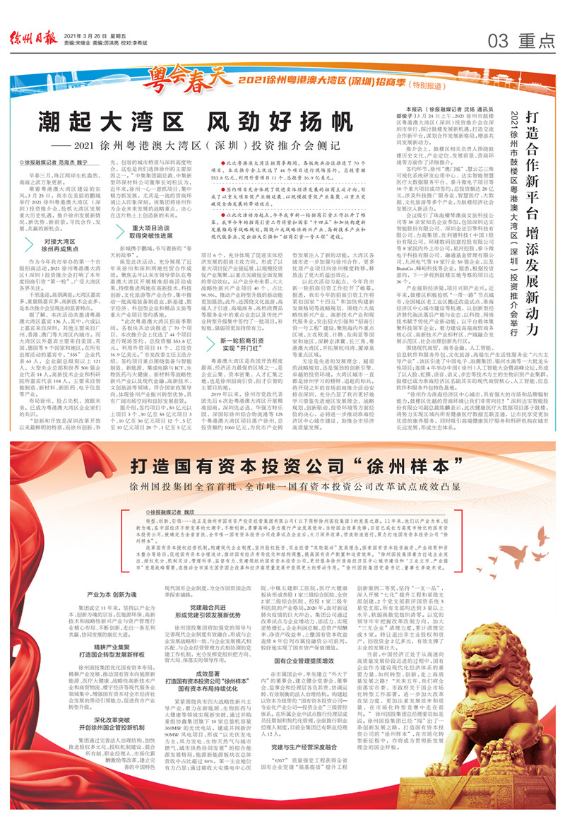 自2017年被確定為全市首家國有資本投資運營(yíng)公司改革試點(diǎn)、2019年被確定為全省首批國有資本投資公司改革試點(diǎn)以來(lái),集團公司堅持全面深化改革,勇于作為,創(chuàng )新作為,推出系列改革舉措,取得了明顯成效,徐州日報對集團公司改革試點(diǎn)工作進(jìn)行了專(zhuān)題報道,全文如下: