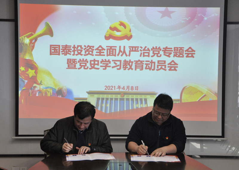 會(huì )議對持續、深入開(kāi)展黨史學(xué)習教育進(jìn)行了再動(dòng)員、再部署,傳達學(xué)習了《關(guān)于開(kāi)展百日學(xué)百年黨史學(xué)習教育活動(dòng)的通知》等文件,強調要堅決貫徹落實(shí)好習近平總書(shū)記在黨史學(xué)習教育動(dòng)員大會(huì )上的講話(huà)精神,以實(shí)施“六個(gè)一”工程為主線(xiàn),牢牢把握重點(diǎn)任務(wù),切實(shí)加強組織領(lǐng)導,精心組織安排,創(chuàng )新豐富方式,高標準高質(zhì)量開(kāi)展好黨史學(xué)習教育,做到學(xué)史明理、學(xué)史增信、學(xué)史崇德、學(xué)史力行,奮力開(kāi)創(chuàng )國泰投資轉型發(fā)展新未來(lái),以?xún)?yōu)異成績(jì)迎接建黨100周年。