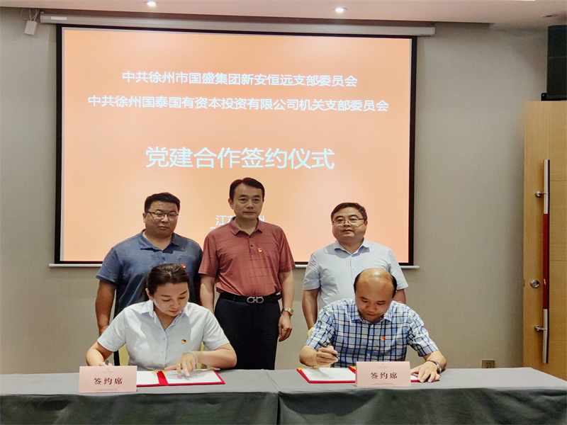 為提升基層黨組織建設組織力、創(chuàng )造力,增強企業(yè)間資源共享、優(yōu)勢互補、互利共贏(yíng)。近日,徐州國投集團徐州國泰國有資本投資有限公司與徐州市國盛集團徐州市新安商業(yè)保理有限公司舉行“業(yè)務(wù)合作”簽約儀式,徐州國泰國有資本投資有限公司機關(guān)支部委員會(huì )與新安恒遠支部委員會(huì )舉行“黨建合作”簽約儀式。市國資委副主任馬緒明出席本次活動(dòng)。