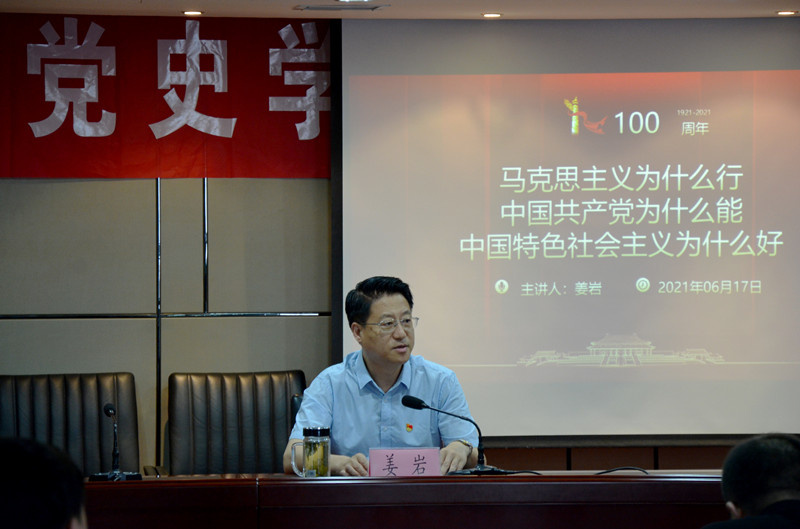 姜巖從馬克思主義為什么行、中國共產(chǎn)黨為什么能、中國特色社會(huì )主義為什么好三個(gè)方面,從黨史的維度進(jìn)行了系統深入的闡述,黨課既有對理論的深入思考,又有對實(shí)際工作的深刻感悟。姜巖指出,黨的百年光輝歷史是一部不斷推進(jìn)馬克思主義中國化的歷史,一部不斷推進(jìn)理論創(chuàng )新、進(jìn)行理論創(chuàng )造的歷史,一部不斷踐行黨的初心和使命的歷史。