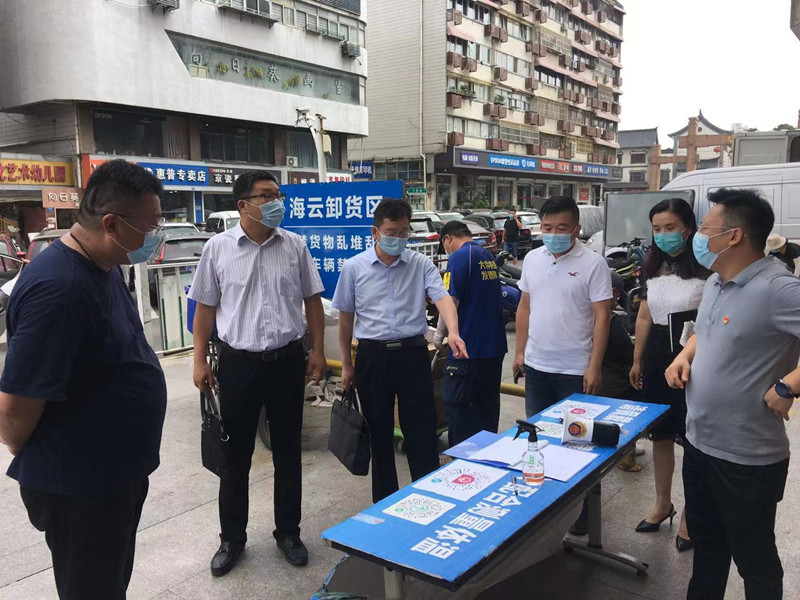 唐自輝一行隨機選取了集團所屬海云公司,現場(chǎng)查看疫情防控工作開(kāi)展情況。重點(diǎn)檢查海云大廈出入口處健康碼和行程碼掃描登記、人員口罩佩戴、電梯間和食堂等公共區域衛生設施消毒情況,并對防疫物資儲備情況進(jìn)行了詳細查看。