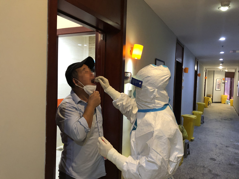 每入駐一名境外人員,工作組要進(jìn)行人員接駁,入隔宣教,信息采取、錄入、上傳,健康監測,標本采樣和呈送,清潔消毒,廢棄物回收和處理,終末消毒等防控工作,以及送餐供應,各項報表,費用管理,物資管理和供應,人文關(guān)懷,錄像監測,客房管理等后勤服務(wù)工作。事無(wú)巨細,缺一不可。由于臨近春節,隔離點(diǎn)接待境外人員很多,他們各自情況不同,入駐時(shí)間不分早晚。工作組不分白天黑夜處于工作狀態(tài),每天夜里都要迎接隔離者,一天休息不足6個(gè)小時(shí),基本上沒(méi)有好好休息過(guò)一個(gè)夜晚。每天都是超負荷在工作,但他們憑著(zhù)強大的信念,一直保持著(zhù)昂揚的斗志。