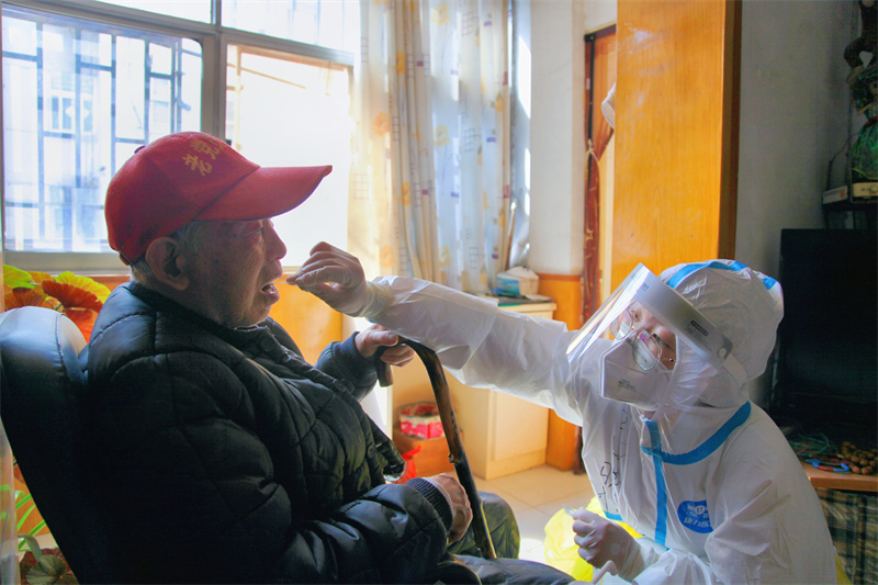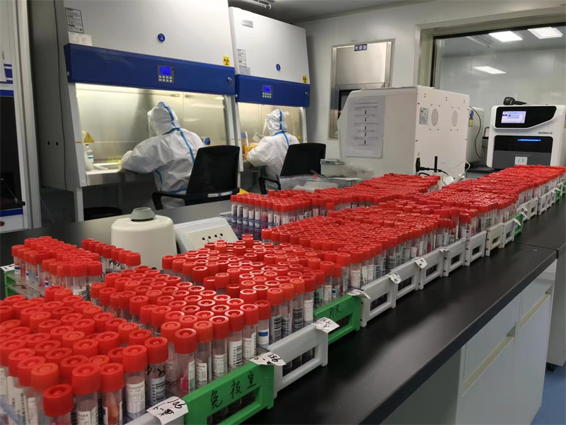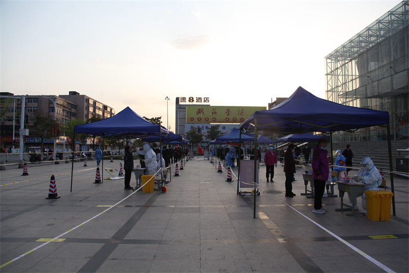 盡銳出戰,黨群勠力同心。9日早上5點(diǎn),天色朦朧中,黨員帶領(lǐng)所有工作人員已到達指定采樣點(diǎn),開(kāi)始做采樣前的準備工作,6點(diǎn)鐘采樣準時(shí)開(kāi)始。四月的早上與中午溫差大,采樣人員穿著(zhù)單薄,早上冷風(fēng)襲來(lái),有的人皮膚上起了蕁麻疹,不敢用手去撓;中午在太陽(yáng)的炙烤下,防護服下的衣衫早已濕透,只能忍著(zhù)。即使再辛苦,她們沒(méi)有一聲怨言,有的是戰勝病毒的決心。黨委班子成員下沉一線(xiàn),奔波于各采樣點(diǎn)進(jìn)行巡查、指導,慰問(wèn)大家。黨員同志在采樣中充分發(fā)揮模范帶頭作用,以實(shí)際行動(dòng)帶領(lǐng)大家?jiàn)^力作戰。入戶(hù)人員穿著(zhù)防護服深入社區,一上午要爬幾十層樓,為行動(dòng)不便的老人采樣。后方陣營(yíng)的檢驗科在多人被抽調外出支援的情況下,面對堆積如山的標本,克服困難,換人不停機,保質(zhì)保量完成標本檢測任務(wù)。
