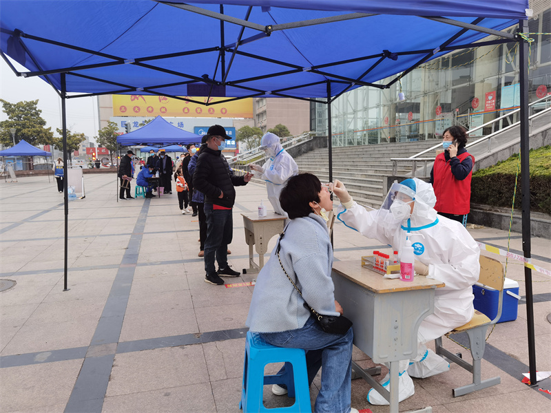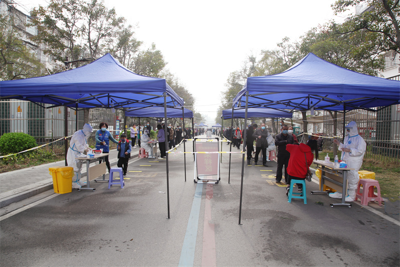 副院長(cháng)張文權下班后沒(méi)有回家,來(lái)到所負責的采樣點(diǎn),帶頭穿上防護服當起了志愿者,為采樣居民進(jìn)行信息登記。