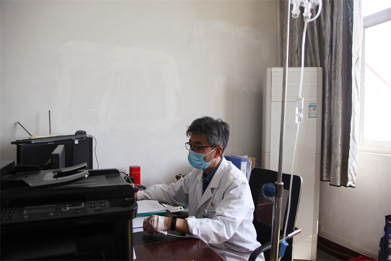 除了辛苦奮斗在采樣現場(chǎng)的人員,還有一位帶給大家感動(dòng)的人,他就是防控辦副主任趙智勇。防控任務(wù)責任重大,事無(wú)巨細。自負責防控工作以來(lái),他加班加點(diǎn),付出了大量心血,晚上參加上級防控會(huì )議是家常便飯,會(huì )議開(kāi)到凌晨一兩點(diǎn)鐘并不少見(jiàn)。身邊的同事評價(jià)他“趙老師是全年無(wú)休!”工作的緊張及辛苦,使他得了高血壓,這次全員核酸檢測時(shí),他還在輸液治療中。為了不影響工作,他只能中午在辦公室一邊輸液,一邊聯(lián)絡(luò )協(xié)調采樣現場(chǎng)工作,并每小時(shí)一次對各采樣點(diǎn)報來(lái)的核酸采樣數據進(jìn)行匯總上報。