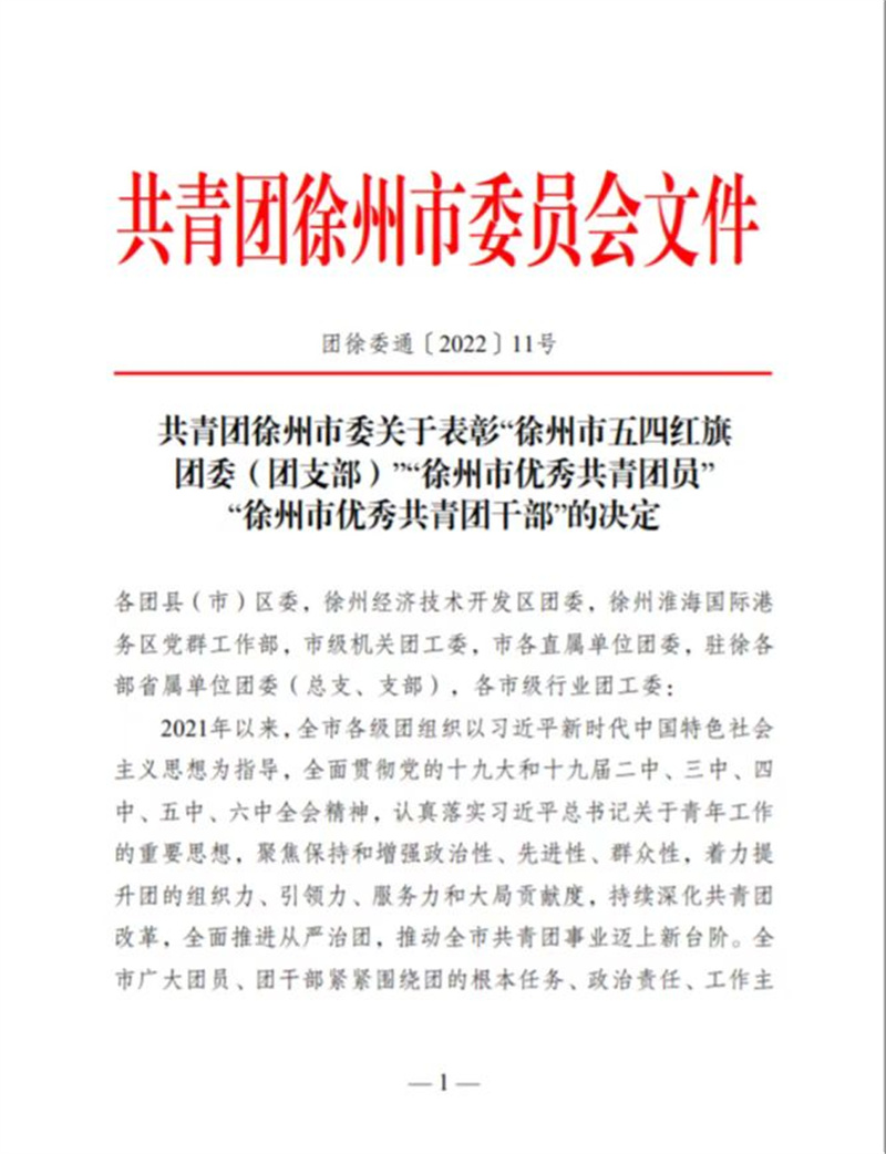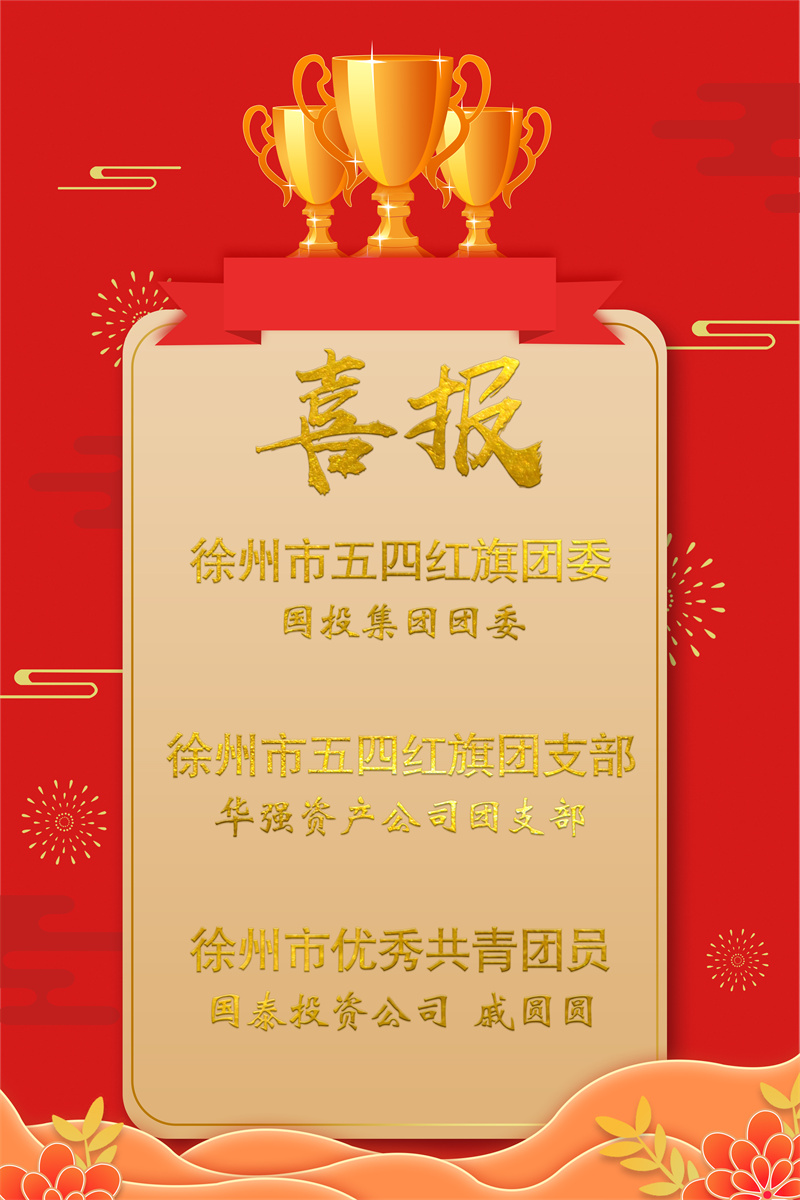 2022年是黨的二十大召開(kāi)之年,也是中國共青團成立100周年。近日,共青團徐州市委對各級團組織及個(gè)人作出表彰。其中,國投集團團委榮獲“五四紅旗團委”稱(chēng)號、華強資產(chǎn)公司團支部榮獲“五四紅旗團支部”稱(chēng)號,國泰投資公司戚圓圓同志榮獲“優(yōu)秀共青團員”稱(chēng)號。