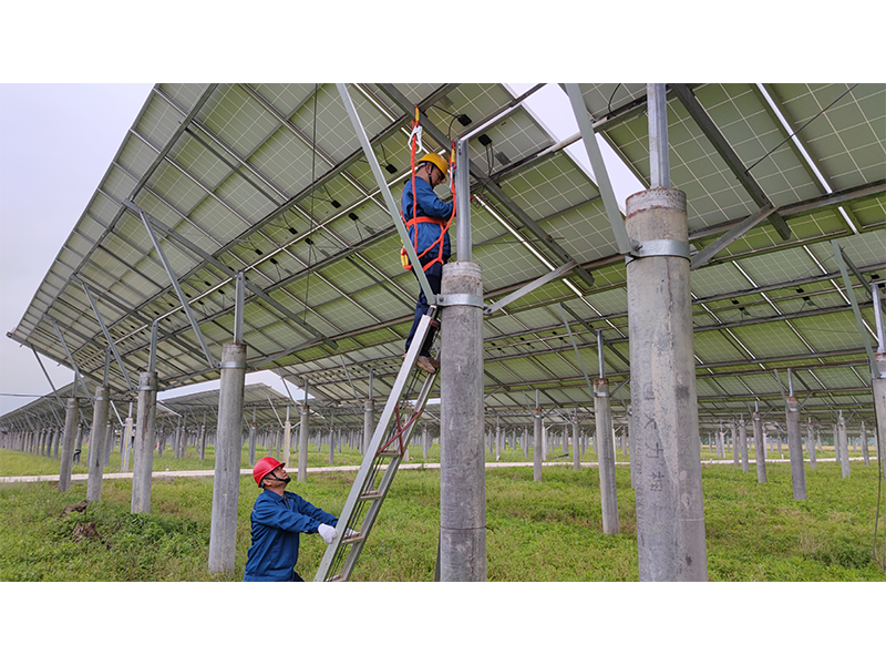 太湖鑫能電站位于安慶山區,總裝機容量2萬(wàn)千瓦,占地面積647畝,分別在三個(gè)不同地方,區域跨度大、道路條件差,有些光伏區甚至無(wú)法通車(chē),只能攜帶沉甸甸的維修設備徒步前行,身體和設備維修都面臨著(zhù)極大考驗。10月1日上午11時(shí),驕陽(yáng)似火,“秋老虎”的回歸使氣溫重返36度。電站班長(cháng)謝文理帶領(lǐng)巡檢人員走在狹窄的田埂上,厚重的工作服下早已滲滿(mǎn)了汗水,他們已經(jīng)徒步巡檢了3公里的線(xiàn)路,走在最前面的謝文理在匯報完工作進(jìn)度后,轉頭對同行人員說(shuō)“12點(diǎn)前必須把這個(gè)區域仔細巡檢一遍,下午再去剩下的區域”。說(shuō)著(zhù)他加快了腳步,一行人在泥濘的地面上留下了一串串深深的腳印。