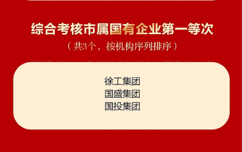 1月30日,徐州市委、市政府召開(kāi)高質(zhì)量發(fā)展大會(huì ),會(huì )議表彰了一批2022年度考核先進(jìn)單位,國投集團榮獲位列綜合考核市屬?lài)衅髽I(yè)第一等次,登上2022年度高質(zhì)量發(fā)展光榮榜。