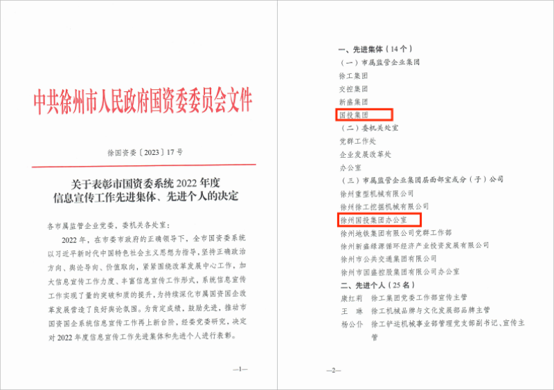 近日,市國資委表彰了市國資委系統2022年度信息宣傳工作先進(jìn)集體,集團公司榮獲“市屬監管企業(yè)集團先進(jìn)集體”,集團公司辦公室榮獲“市屬監管企業(yè)集團層面部室或分(子)公司先進(jìn)集體”。