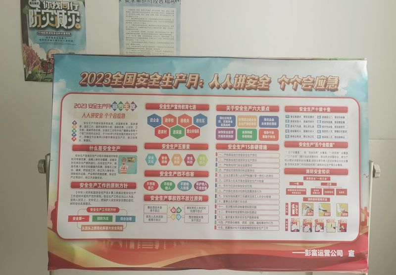 彭富運營(yíng)公司:今年6月是第22個(gè)全國“安全生產(chǎn)月”,彭富運營(yíng)公司上下樹(shù)牢安全發(fā)展理念,壓緊壓實(shí)安全生產(chǎn)責任,深入排查安全風(fēng)險隱患,扎實(shí)推進(jìn)問(wèn)題整改,筑牢安全生產(chǎn)防線(xiàn),營(yíng)造安全、和諧、發(fā)展的生產(chǎn)環(huán)境和氛圍。6月上旬,公司召開(kāi)“安全生產(chǎn)月”啟動(dòng)會(huì )議,學(xué)習了習近平總書(shū)記關(guān)于安全生產(chǎn)的重要論述,真正做到學(xué)懂弄通,學(xué)以致用,融入日常安全生產(chǎn)管理工作。傳達了徐州市委、市政府及集團公司安全生產(chǎn)相關(guān)文件,深刻學(xué)習領(lǐng)會(huì )了集團公司2023年安全(消防)環(huán)保工作會(huì )議精神。通過(guò)制定安全生產(chǎn)月活動(dòng)計劃,制作安全生產(chǎn)月宣傳海報、條幅,以及動(dòng)員員工積極參與集團公司舉辦的安全知識競賽,進(jìn)一步增強安全意識。