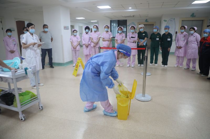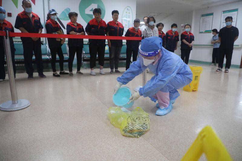 為進(jìn)一步規范醫療廢物管理,提高醫務(wù)人員及保潔人員在發(fā)生醫療廢物意外遺撒、泄露后的應急處置能力,避免因醫療廢物泄露意外事件導致人身傷害和環(huán)境污染事故的發(fā)生,7月20日下午,徐州澳洋華安康復醫院開(kāi)展醫療廢物遺撒、泄露應急處置演練活動(dòng)。此次演練由醫院感染管理科組織實(shí)施,醫務(wù)部、護理部、后勤保障部等部門(mén)密切配合,各臨床科室護士、保潔人員共同參加。