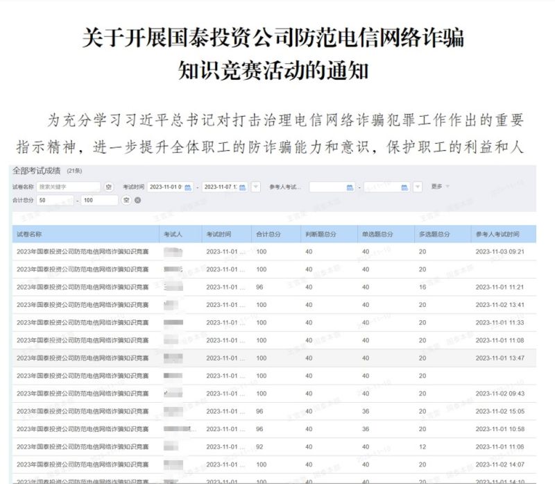 為深入學(xué)習習近平總書(shū)記關(guān)于打擊治理電信網(wǎng)絡(luò )詐騙犯罪的重要指示精神,切實(shí)提高企業(yè)職工及親屬對電信網(wǎng)絡(luò )新型違法犯罪的鑒別能力和防范意識,牢固樹(shù)立“防范全覆蓋、宣傳全視角、機制全鏈條”防范宣傳理念,國泰投資公司積極響應集團公司號召,開(kāi)展“無(wú)詐企業(yè)”創(chuàng )建工作。