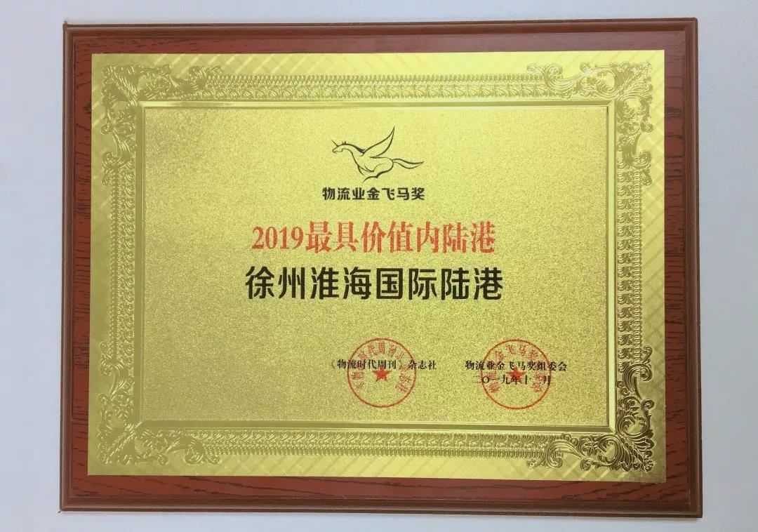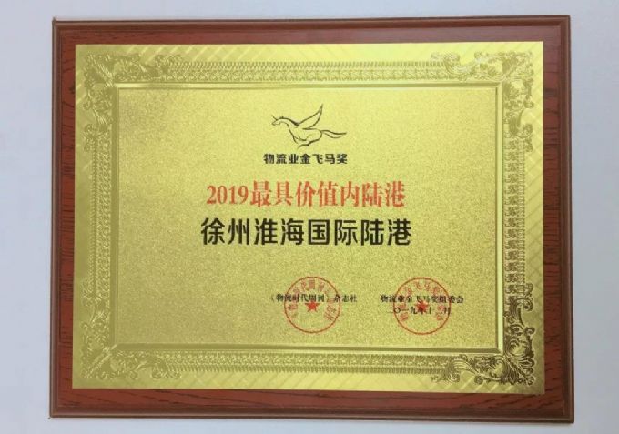 近期中國交通運輸協(xié)會(huì )城市物流分會(huì )組織了“2019最具價(jià)值內陸港”網(wǎng)上評選活動(dòng),經(jīng)過(guò)網(wǎng)上投票評選和線(xiàn)下綜合評估,徐州淮海國際陸港發(fā)展有限公司榮獲“2019最具價(jià)值內陸港”物流業(yè)金飛馬獎。
