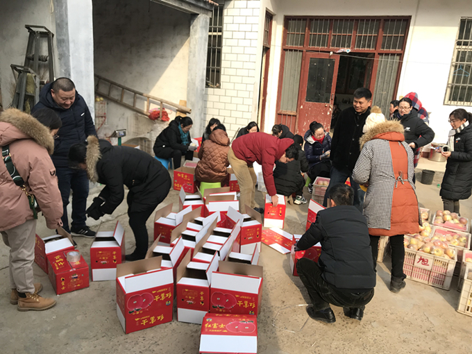 在出發(fā)之前,集團公司機關(guān)黨支部第一時(shí)間將消息轉發(fā)至機關(guān)各支部工作群,號召大家團購蘋(píng)果,幫助季秀云一家解燃眉之急,同時(shí)在工作群、朋友圈等轉發(fā)信息。來(lái)到季秀云家中,同志們明確分工,擼起袖子,裝袋的裝袋,封箱的封箱,在大家的共同努力下,季秀云家中剩余的1000斤蘋(píng)果全部封裝購買(mǎi)完畢,加上從其他村民家拉來(lái)的蘋(píng)果,三個(gè)小時(shí)共封裝蘋(píng)果200余箱2000余斤,真真切切地為當地百姓排憂(yōu)解難,并在春節前發(fā)放給集團公司黨員。黨員們?yōu)槔先怂蜕瞎澣瘴繂?wèn)品,贈予老人的孫子書(shū)包、文具,并鼓勵他刻苦學(xué)習。
